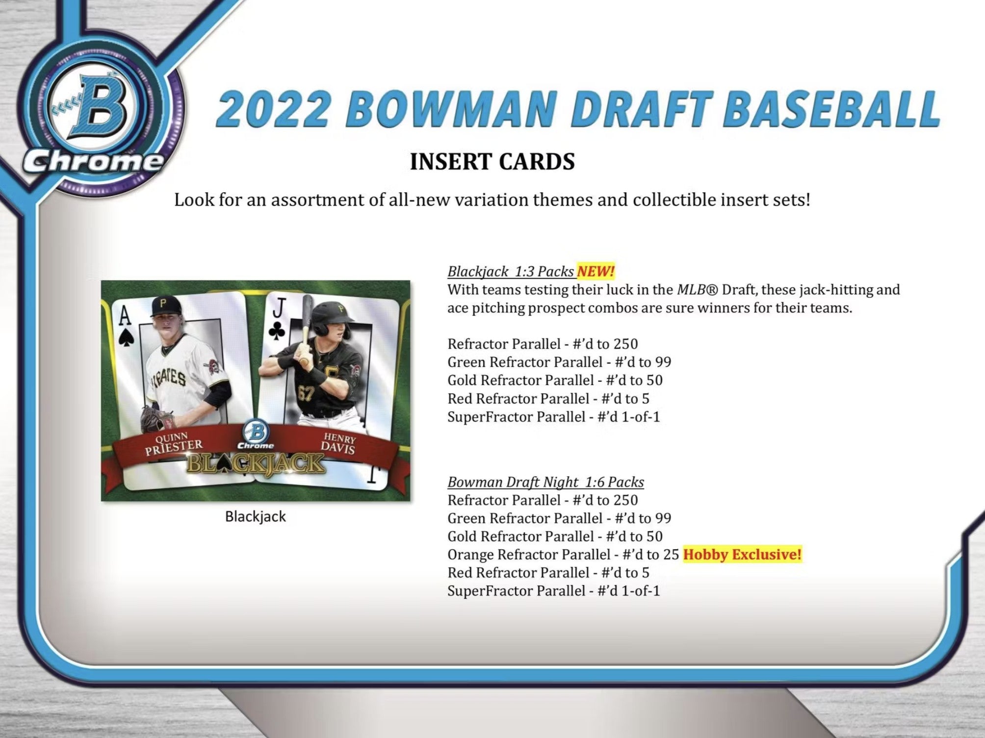 2022 Topps Bowman Draft Baseball Jumbo Trading Cards