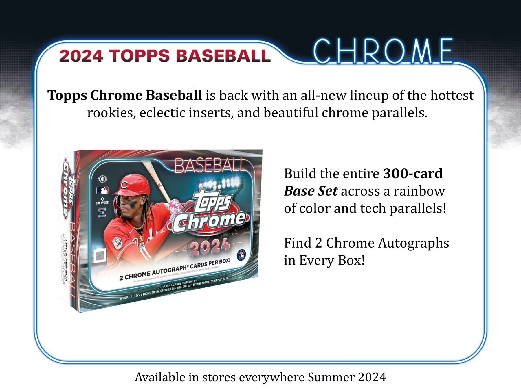 Topps Chrome Baseball is back with an all-new lineup of the hottest rookies, eclectic inserts, and beautiful chrome parallels.