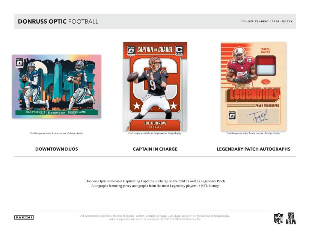 Donruss Optic showcases Captivating Captains in charge on the field as well as Legendary Patch Autographs featuring jersey autographs from the most Legendary players in NFL history.