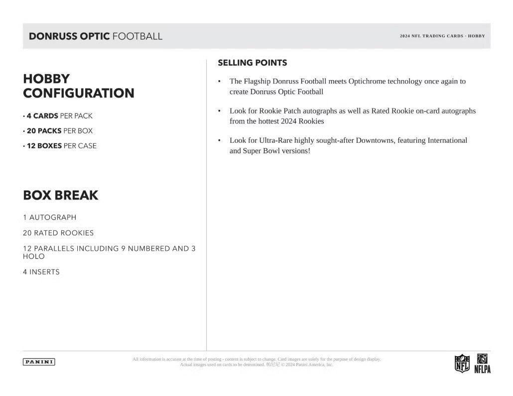 2024 Panini Donruss Optic Football Hobby Trading Cards Pack Auction