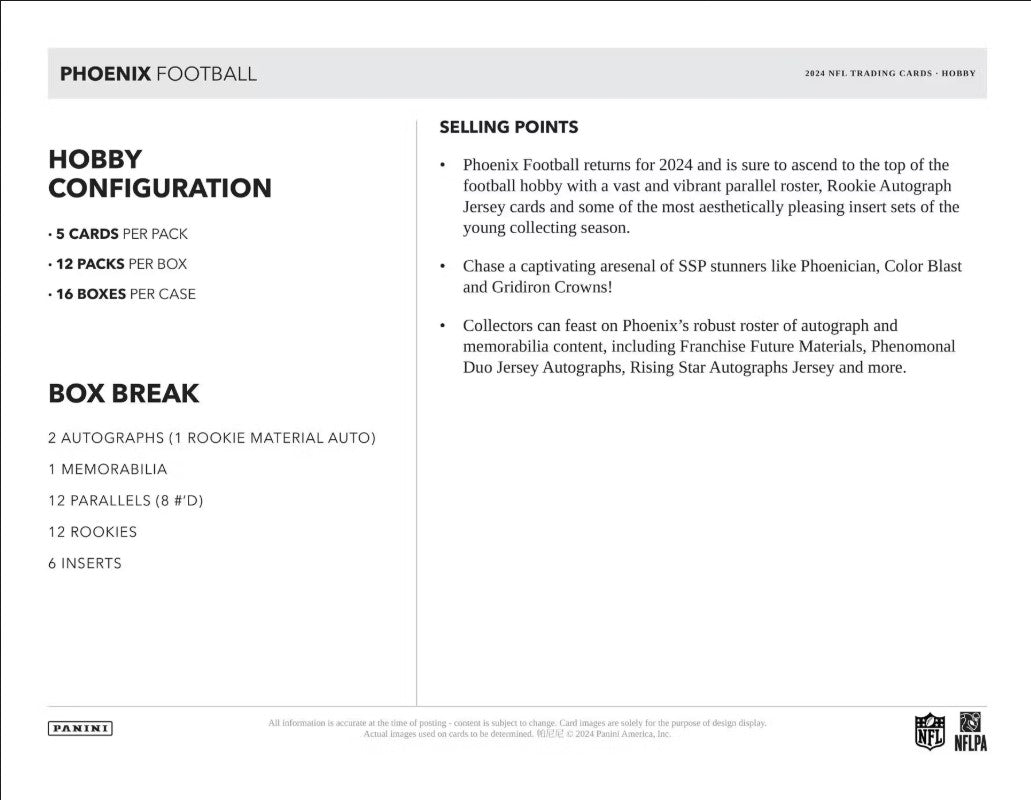 2024 Panini Phoenix Football Hobby Trading Cards LV
