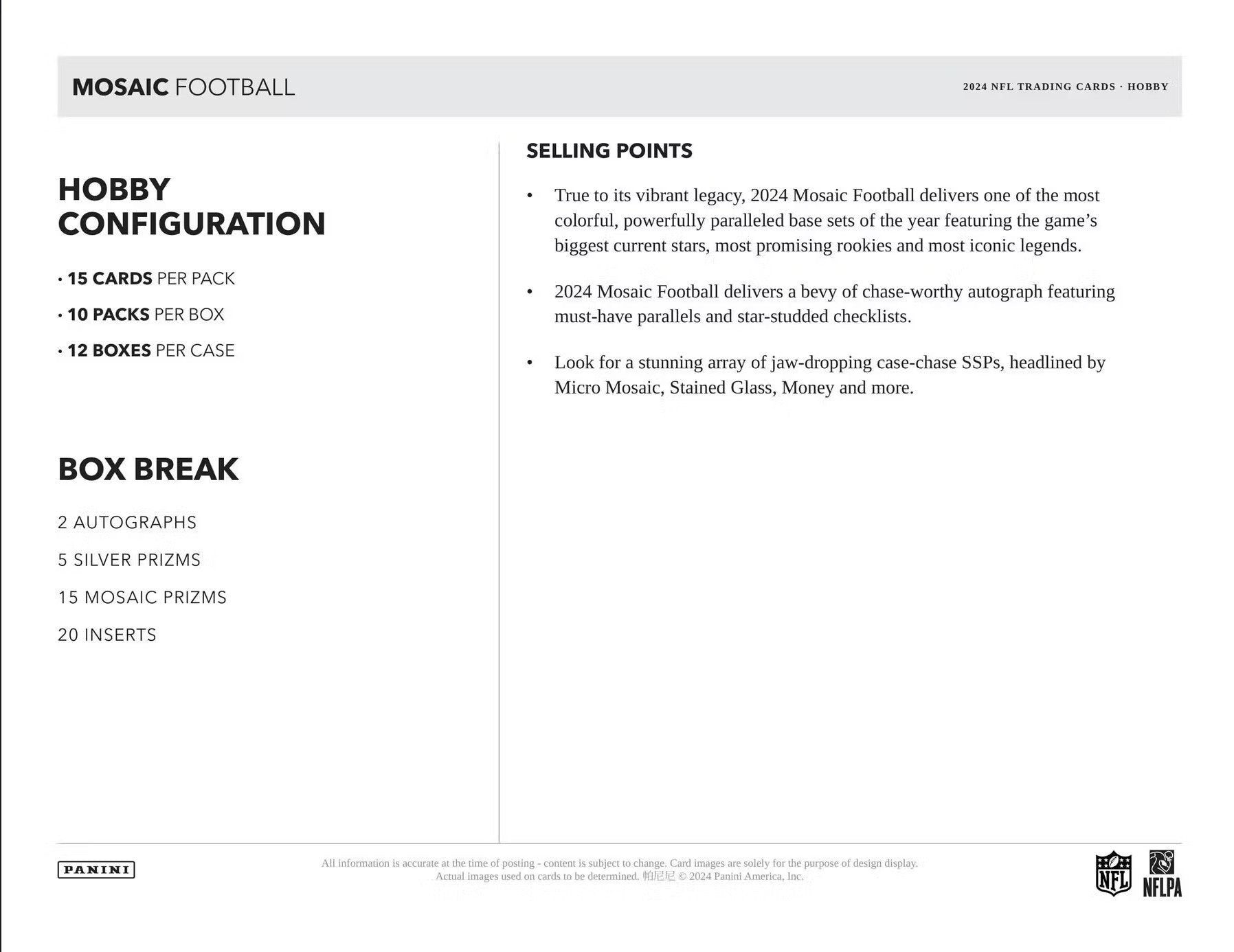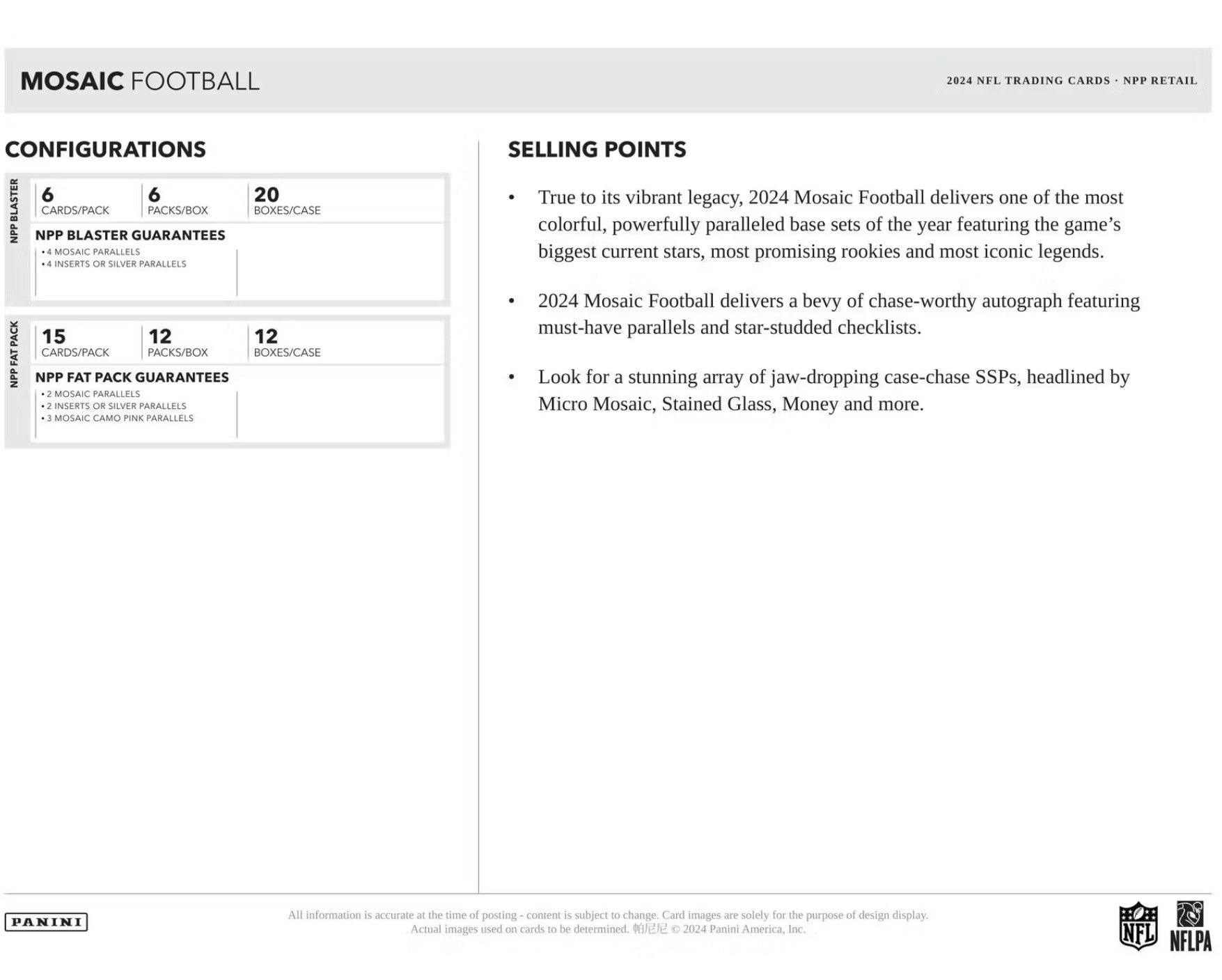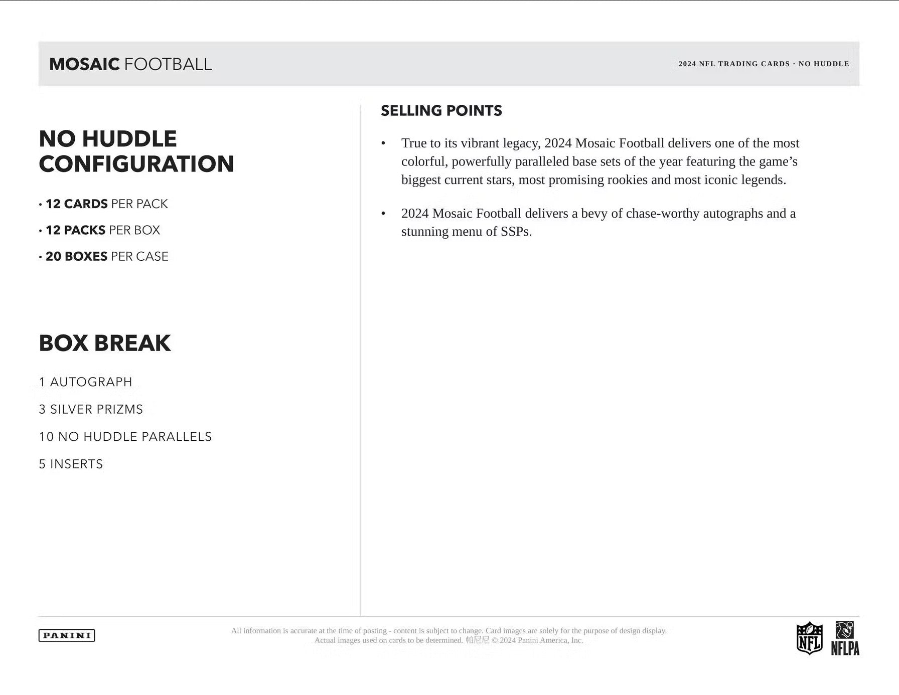 2024 Panini Mosaic Football No Huddle Trading Cards