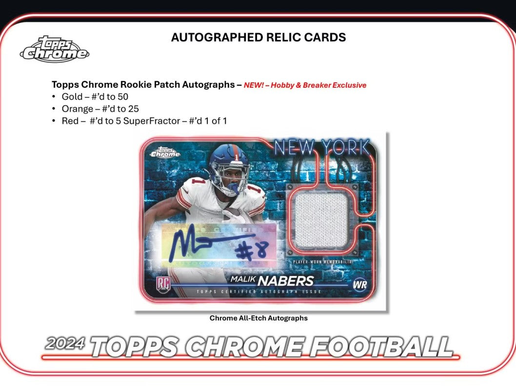 2024 Topps Chrome Football Breakers Delight Trading Cards