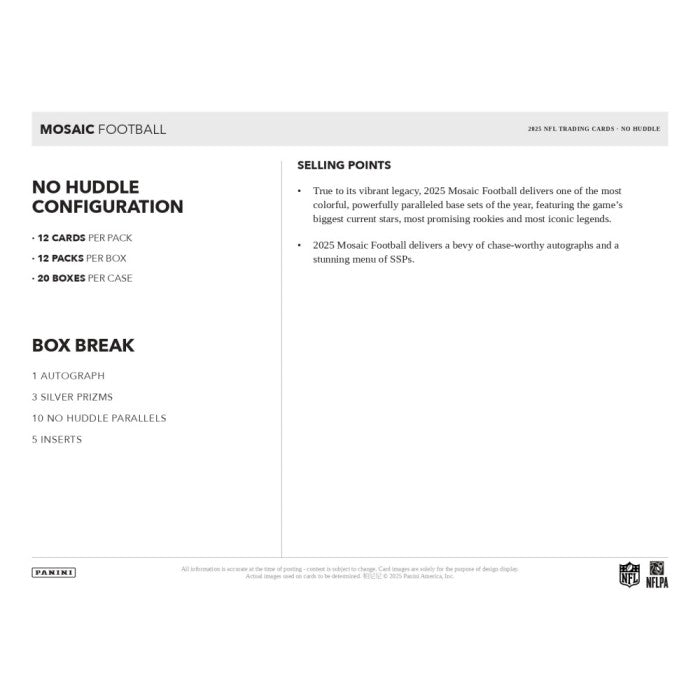 2025 Panini Mosaic Football No Huddle Trading Cards