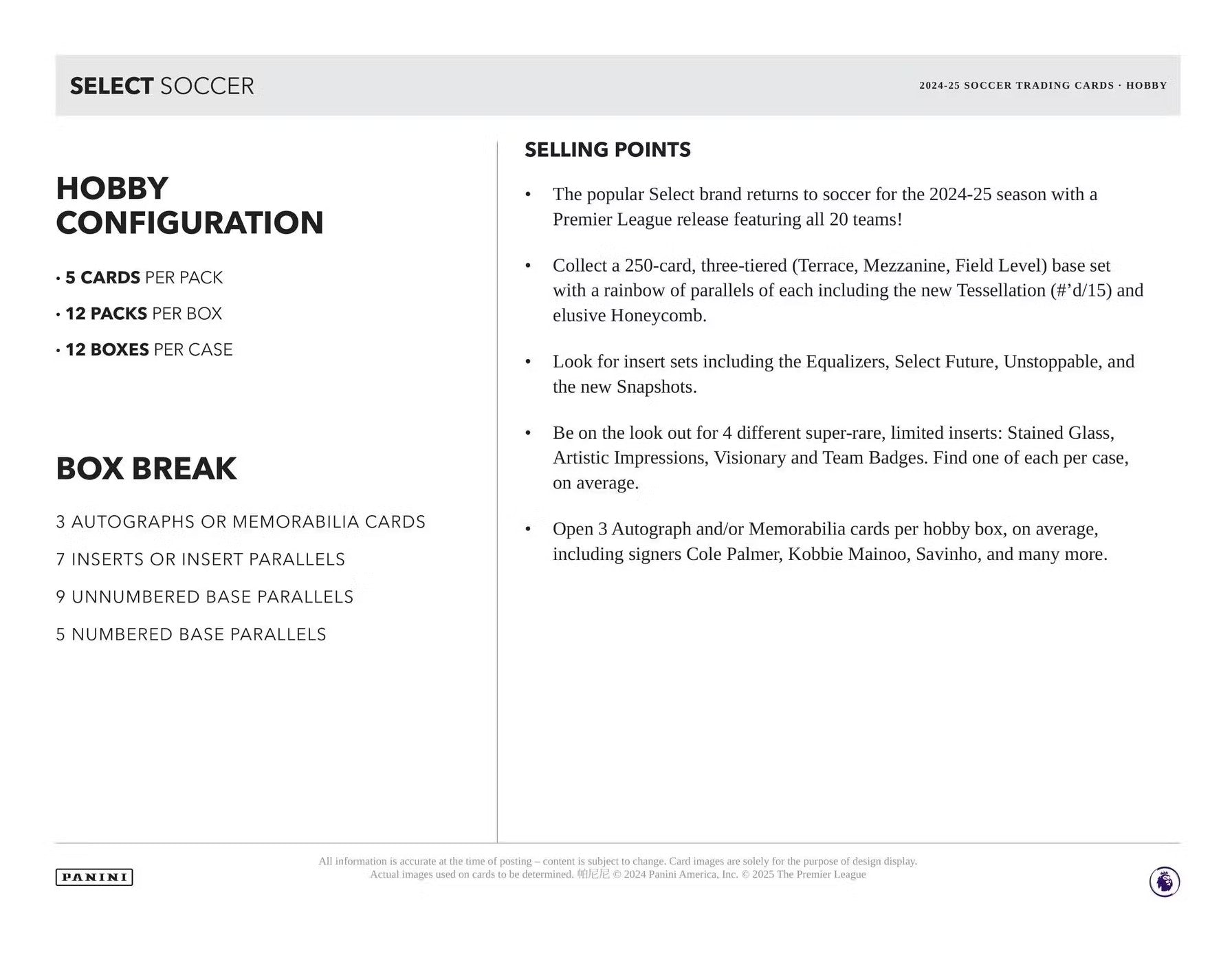 2024-25 Panini Select Soccer EPL Hobby Trading Cards