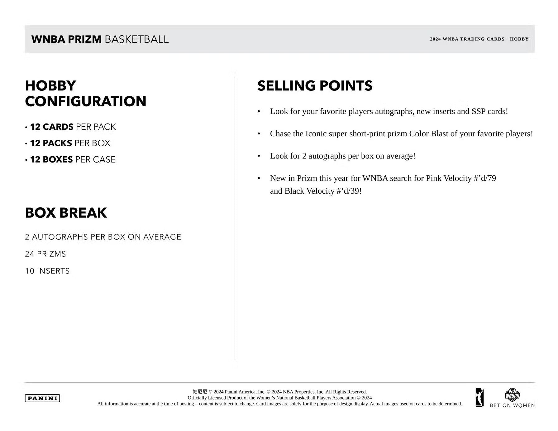 2024 Panini Prizm WNBA Hobby Trading Cards