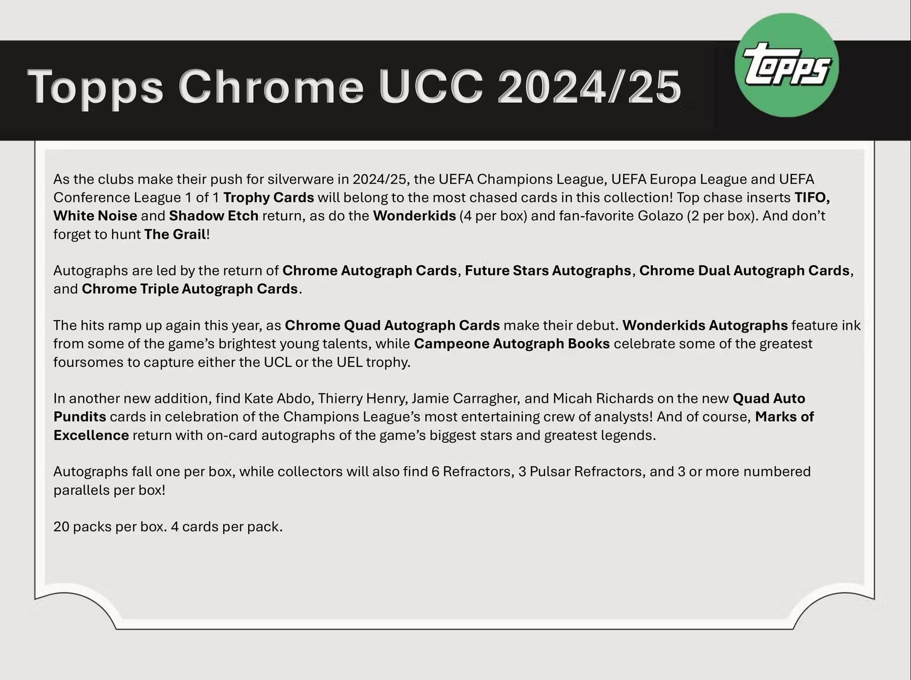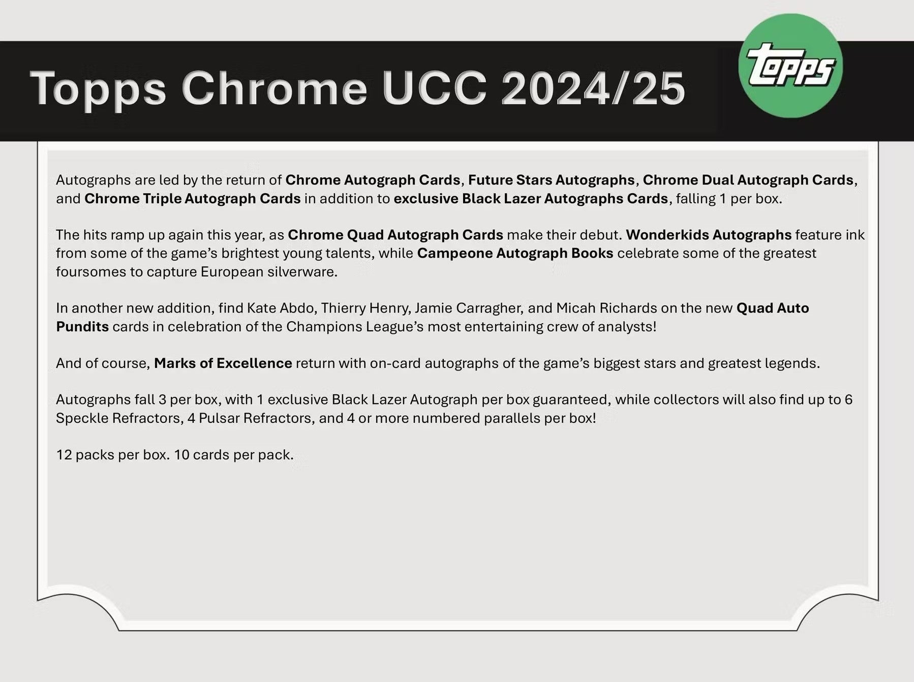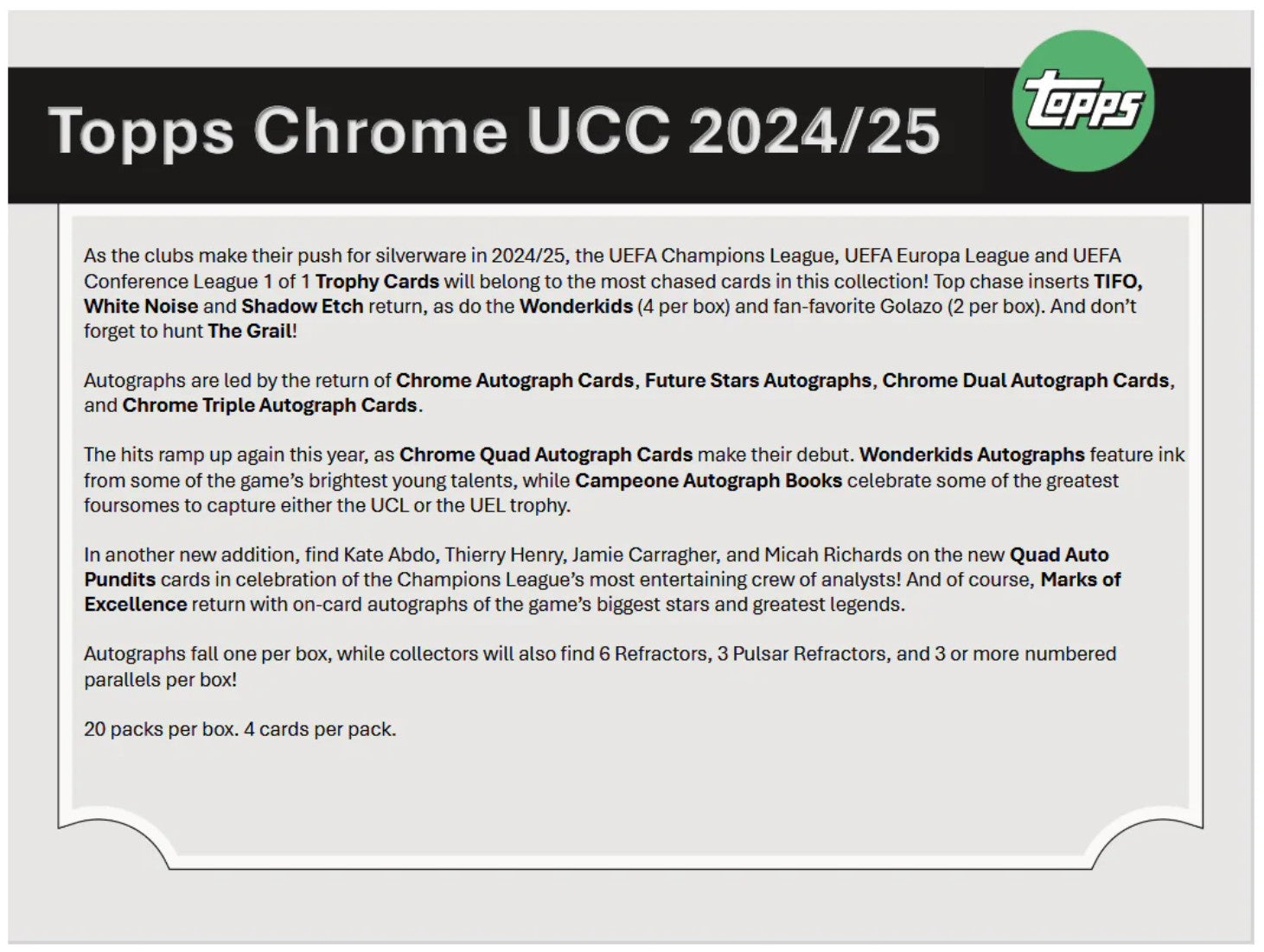 2024-25 Topps Chrome UEFA Club Competitions Soccer Hobby Trading Cards LV