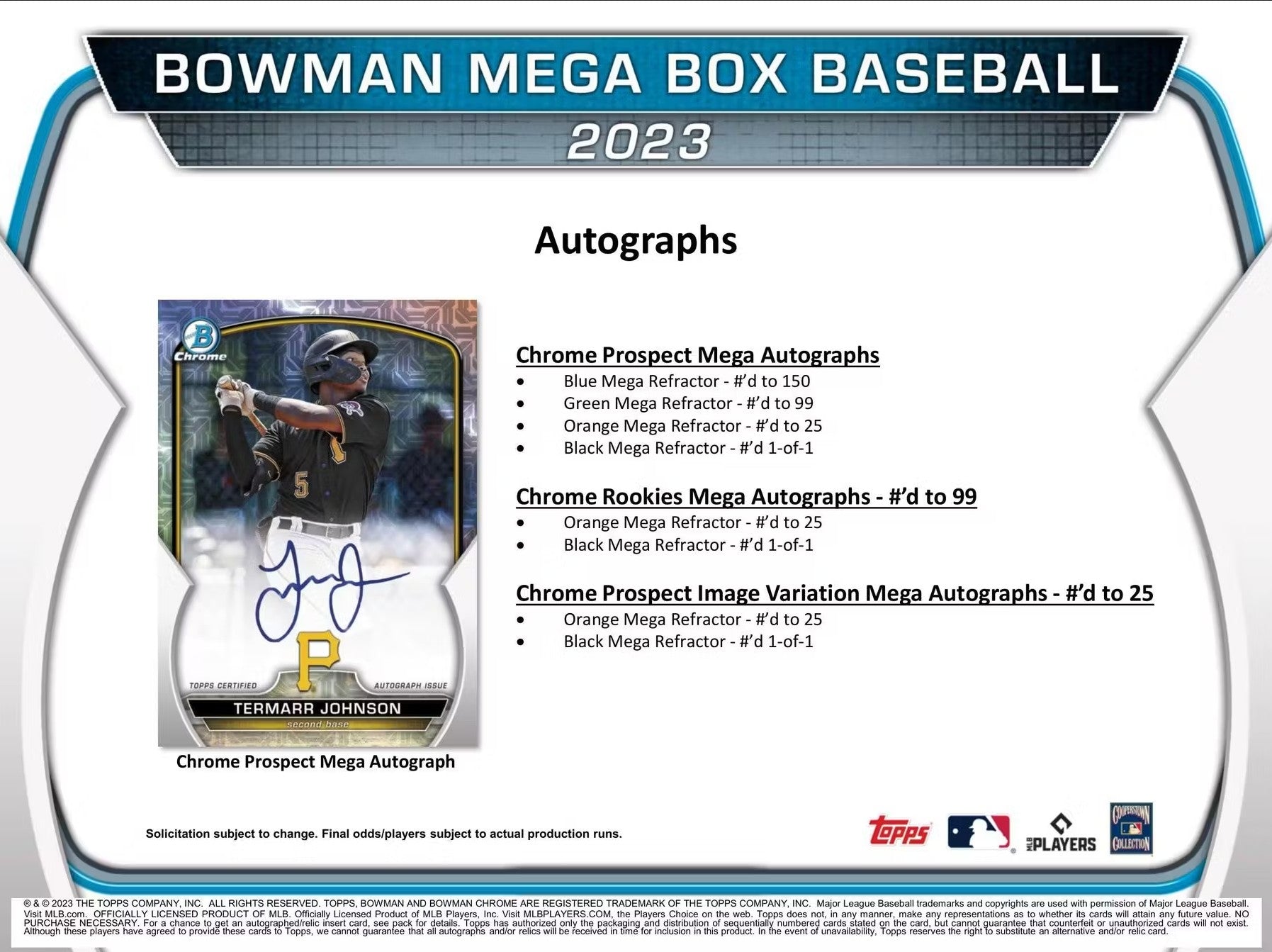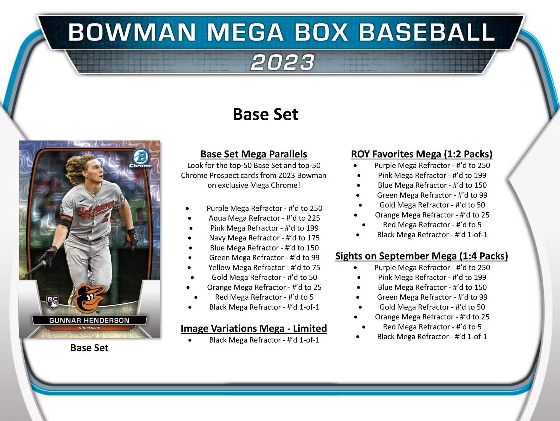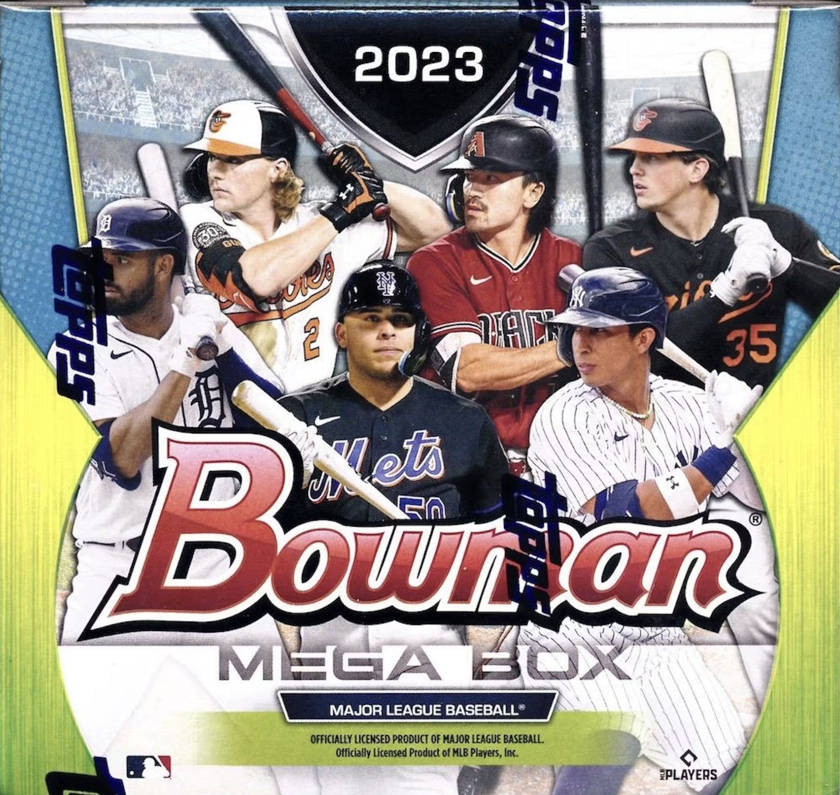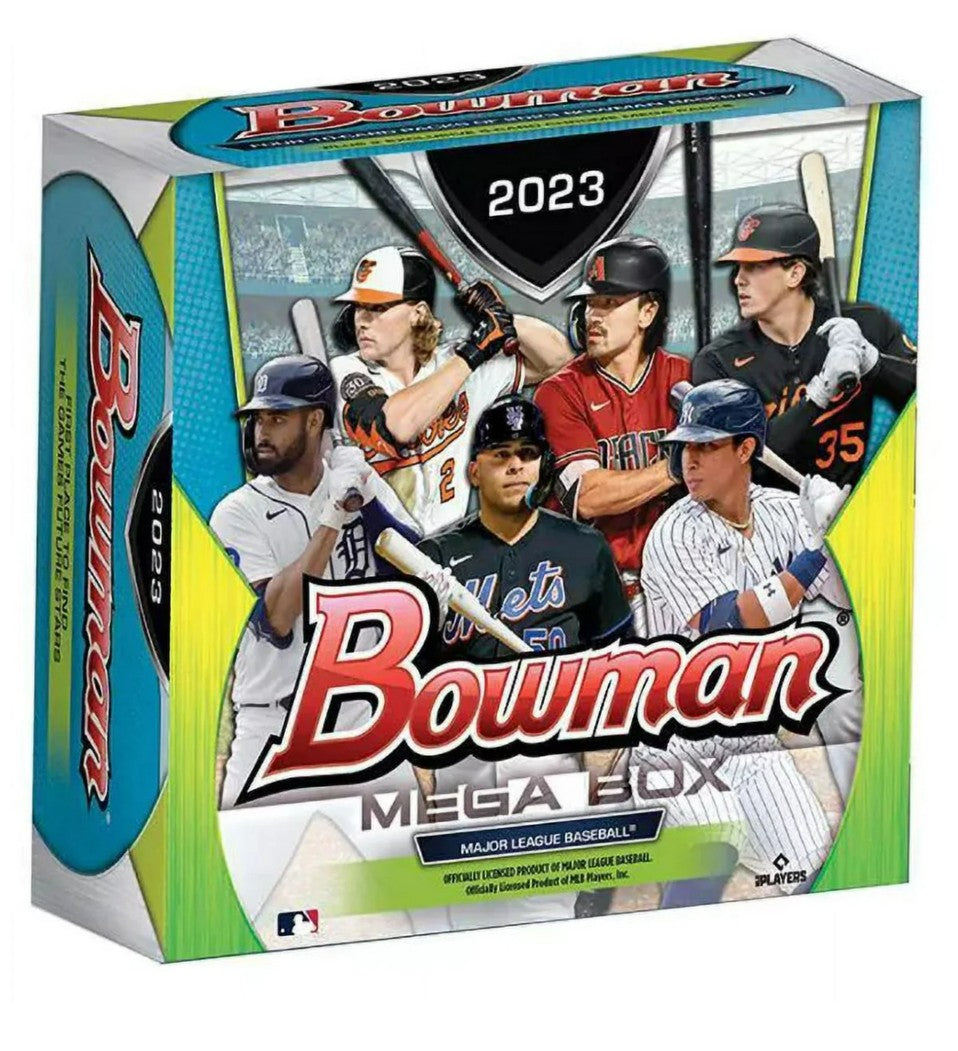 Look for Four (4) 2023 Bowman Base Packs and Two (2) exclusive Mega Chrome packs per Mega Box!
