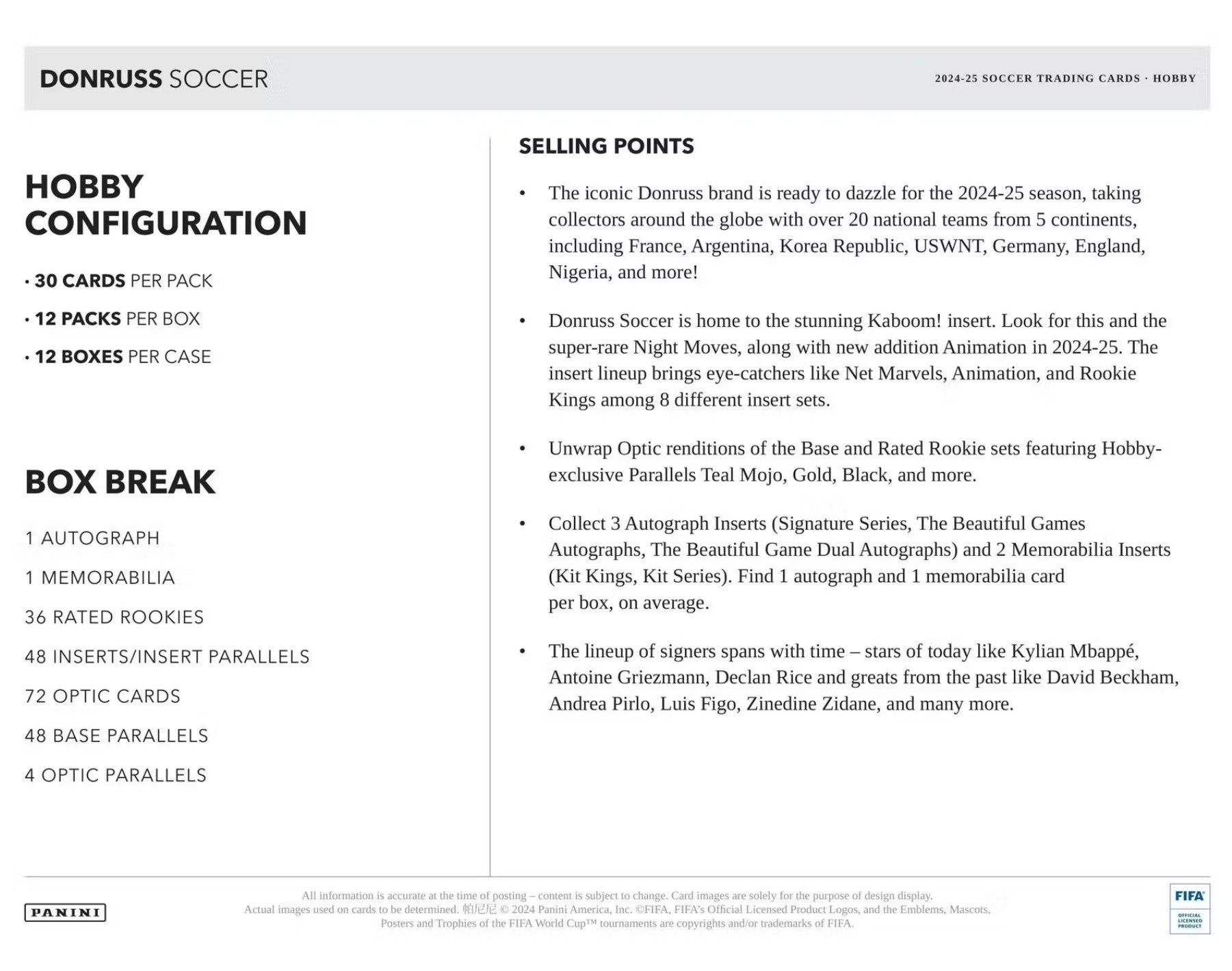 The iconic Donruss brand is ready to dazzle for the 2024-25 season, taking collectors around the globe with over 20 national teams from 5 continents, including France, Argentina, Korea Republic, USWNT, Germany, England, Nigeria, and more!